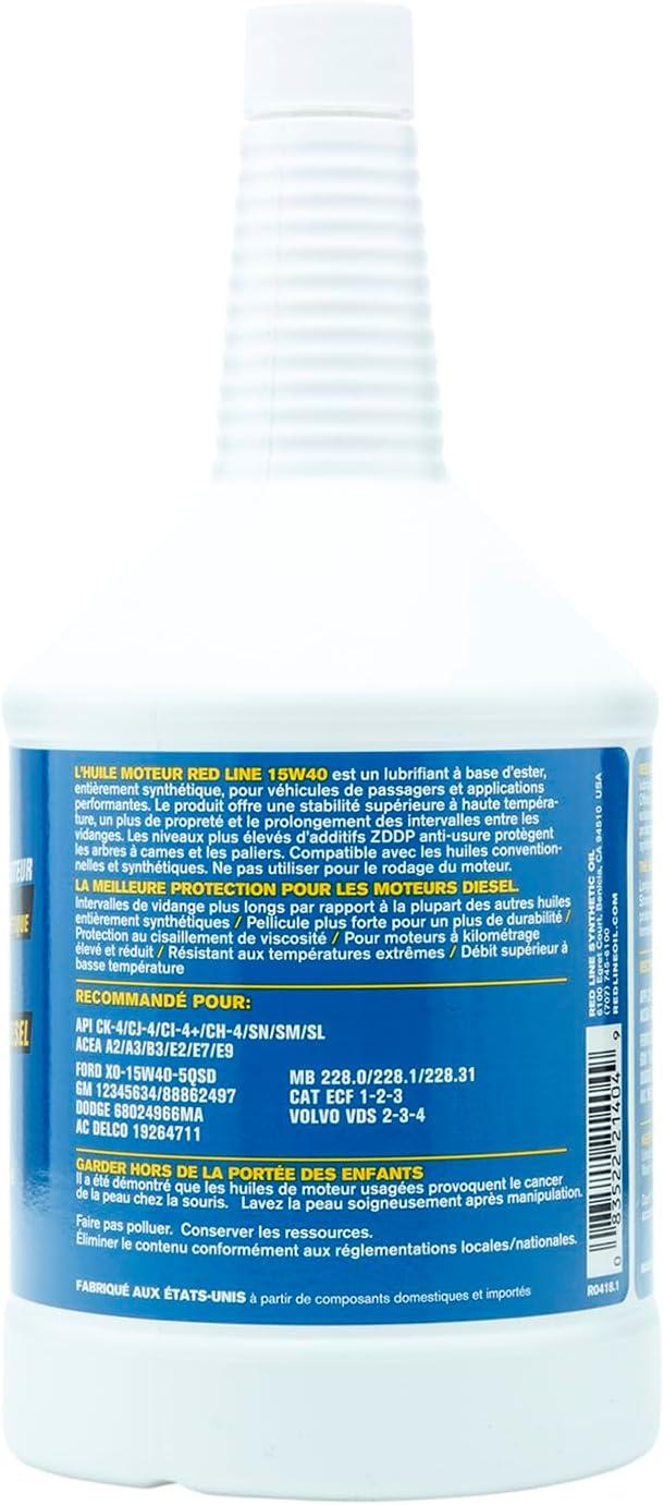 Red Line 21404 15W40 Synthetic Diesel Motor Oil – 1 Quart (12 Pack)(Quart (12 Pack))